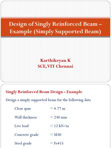 Singly Reinforced Beam Design Example Pdf . Use m 20 concrete and fe415 steel. Assume that d= 2.5b, and then substitut e this v alue in the f ormula.